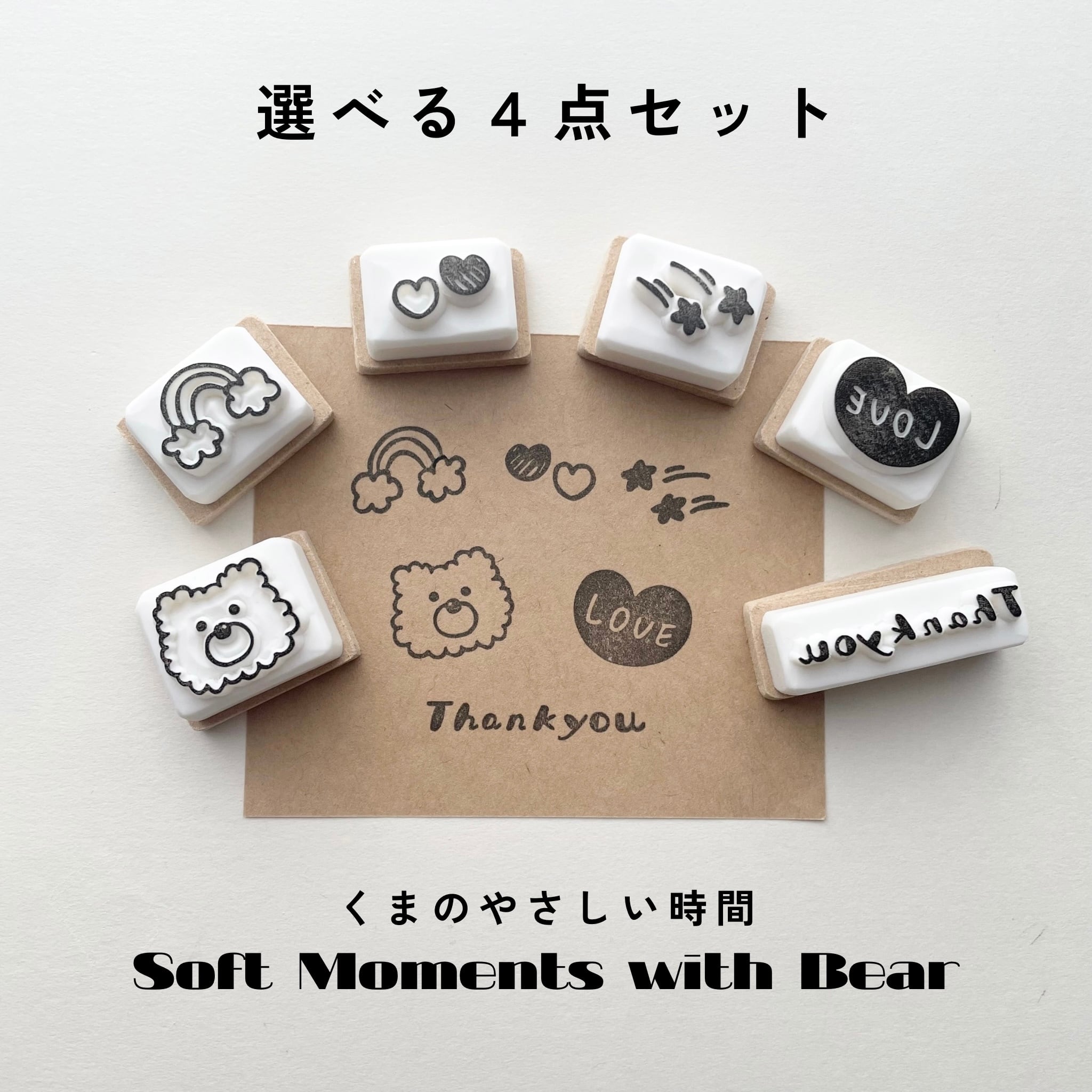 【ミニスタンプ4個セット】くま 虹 ハート くまの優しい時間 ミニスタンプ 手帳デコシンプル ほっこり サンキューカード スタンプ ハンドメイド