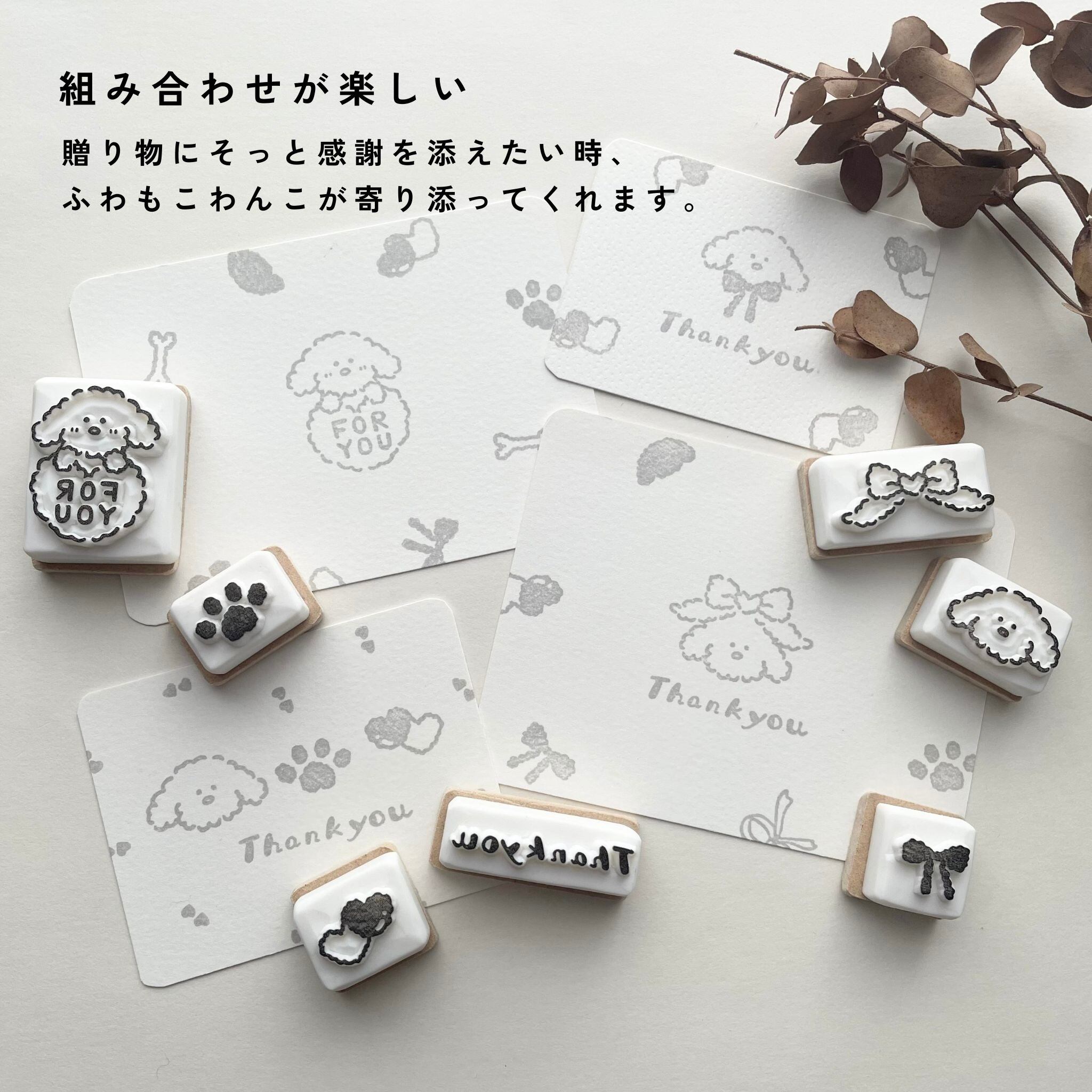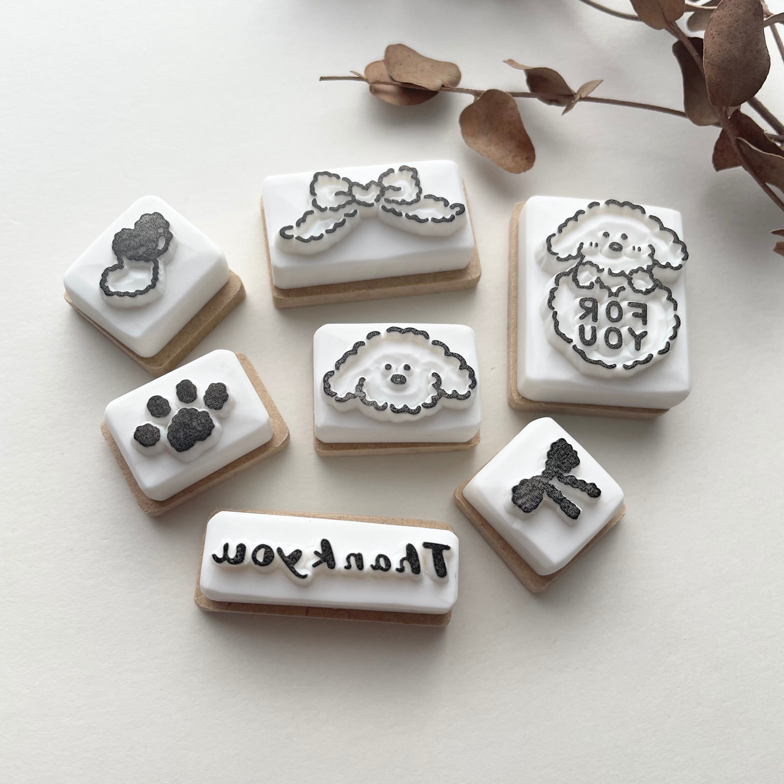 【数量限定】犬のThank youスタンプ 7点セット|消しゴムはんこ|ラッピング・梱包用スタンプ